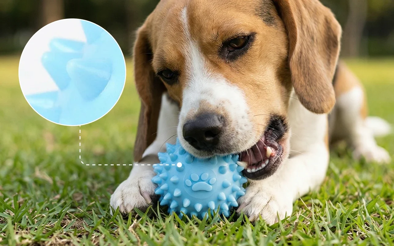 Weiches, aber dennoch robustes Material hält scharfen Zähnen und häufigem Kauen stand. Der Ball bleibt stark und ist jeden Tag einsatzbereit für aktive Tiere.