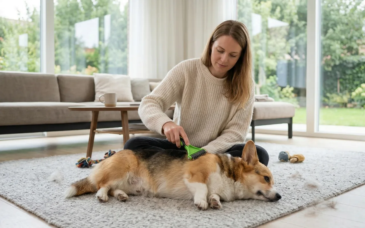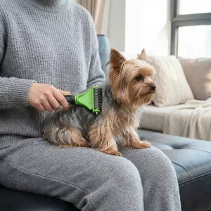 Ich groom meinen Hund jetzt zu Hause. Der Edelstahlrechen holt die Unterwolle heraus, lässt ihr Fell glänzen und der Griff liegt sicher in der Hand, selbst wenn meine Hände feucht sind.