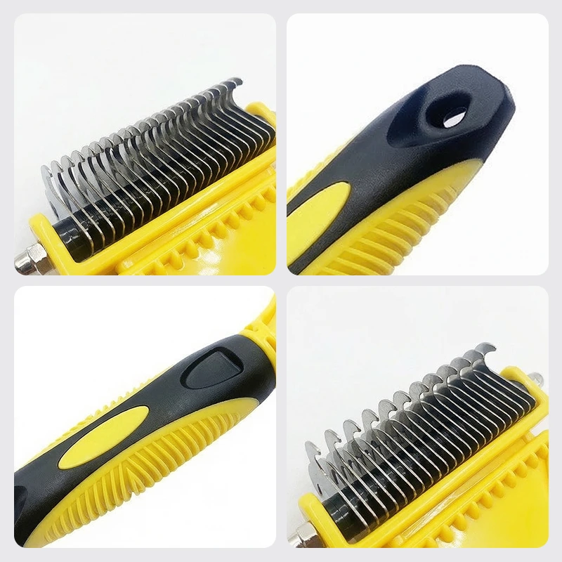 Zweiseitiger Entfilzungsrechen aus Edelstahl für Hunde – Entwirrungs- und Enthaarungswerkzeug