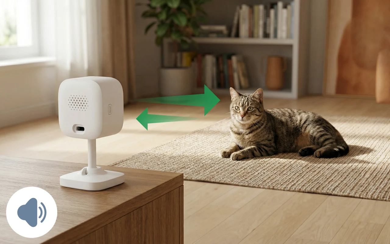 Sprich über die Primdog-Kamera und höre Antworten von deiner Familie. Beruhige Haustiere oder gib Anweisungen, egal wo du bist.