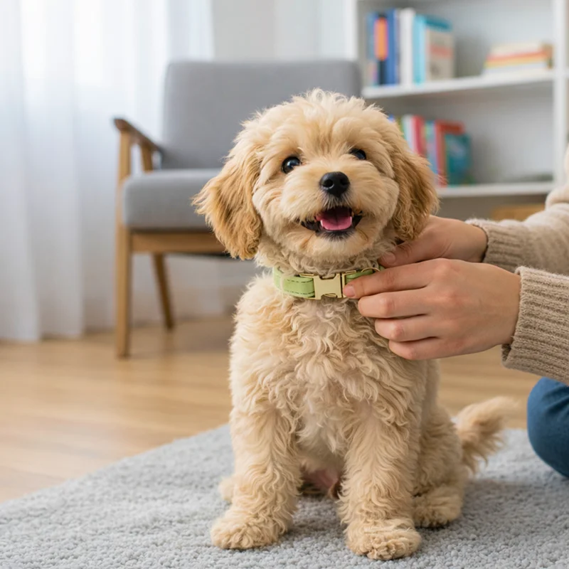 Primdog vereint eleganten Stil und sanfte Fürsorge. Die verstellbare Passform verhindert Unannehmlichkeiten oder Scheuerstellen am Hals. Eine kleine Glocke sorgt dafür, dass Ihr neugieriger Freund auch im Haus sicher bleibt.