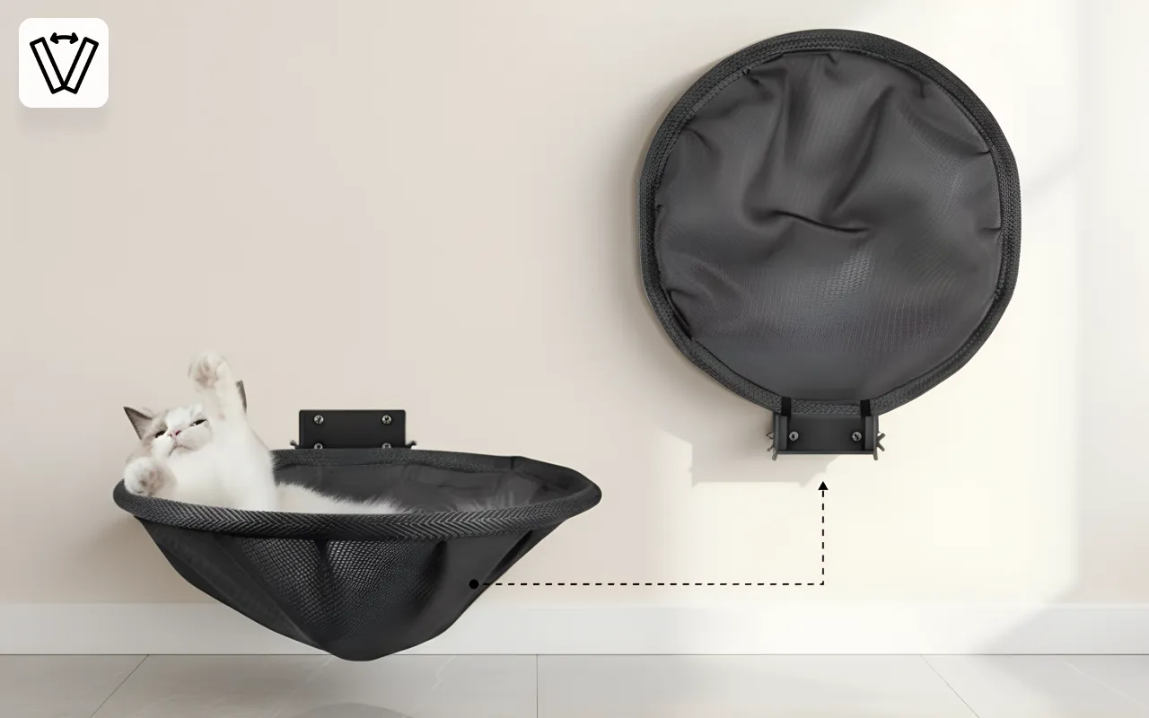 Meine Katze liebt ihren Aussichtspunkt und ich mag, dass er Platz spart. Sie fühlt sich dort sicher und der Stoff lässt sich zum Waschen einfach abnehmen.