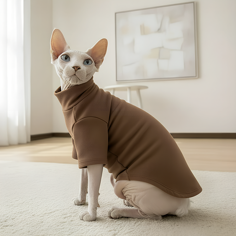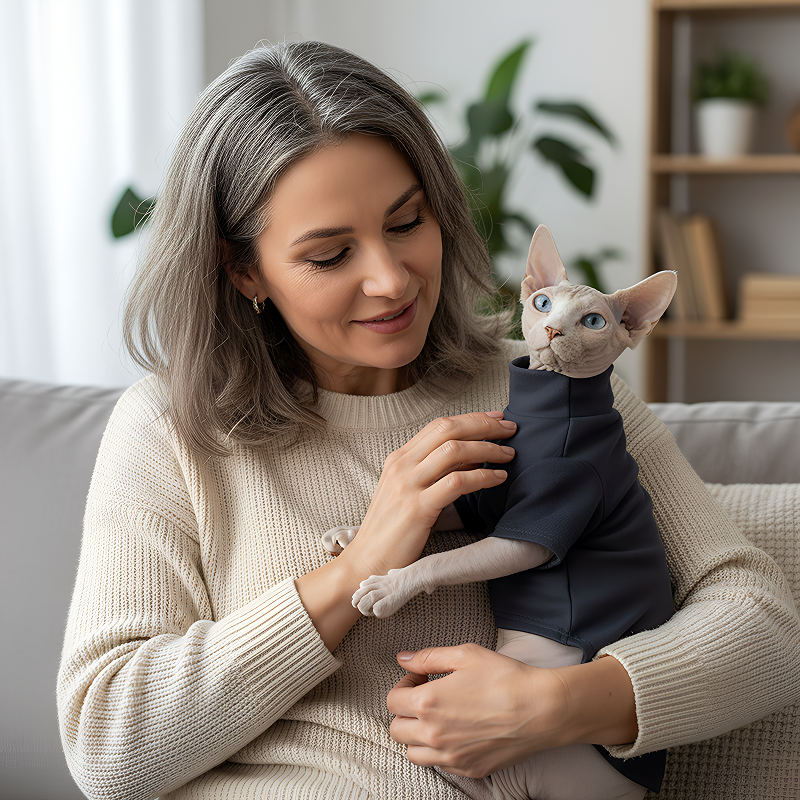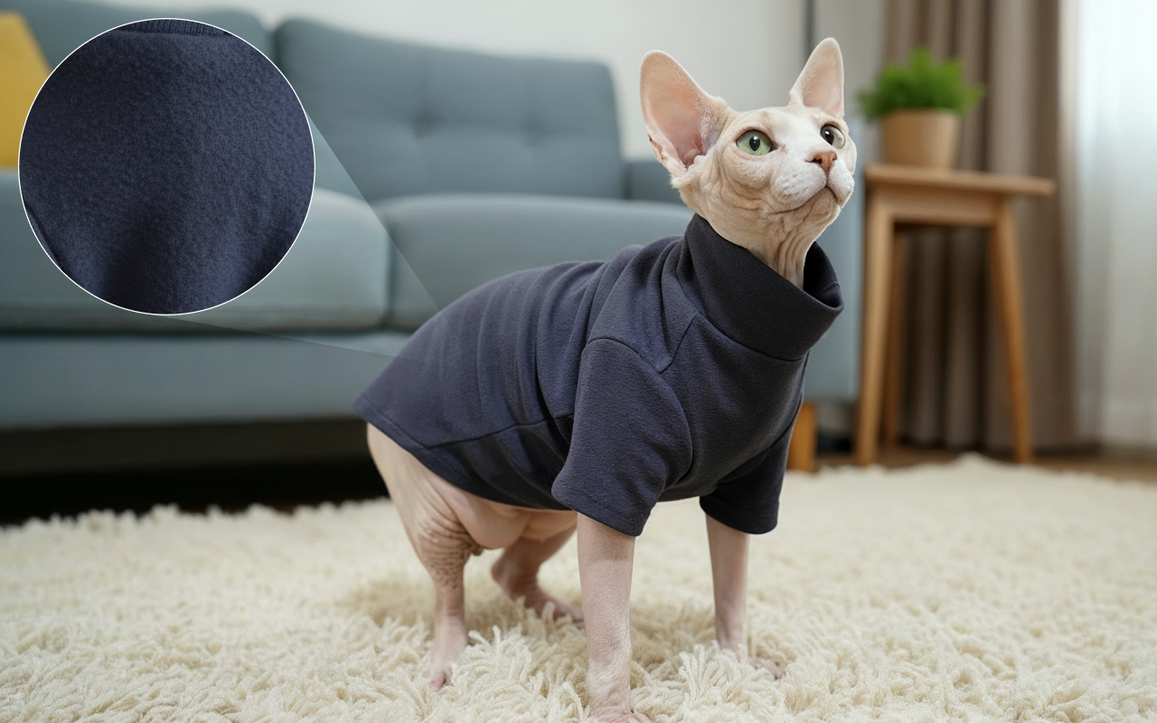 Die Baumwolle ist so schön! Meine Katze kratzt normalerweise an allem, aber nicht mit diesem Pullover. Sie scheint sich wohlzufühlen und kann problemlos durchs Haus flitzen.