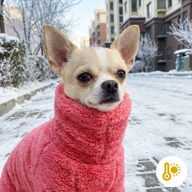 Super für kalte Spaziergänge! Der Hals und der ganze Körper meines Hundes bleiben schön warm. Sie freut sich immer, wenn die Pyjamas herausgeholt werden.